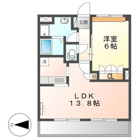 洋室 6.0帖/LDK 13.8帖 - 向き